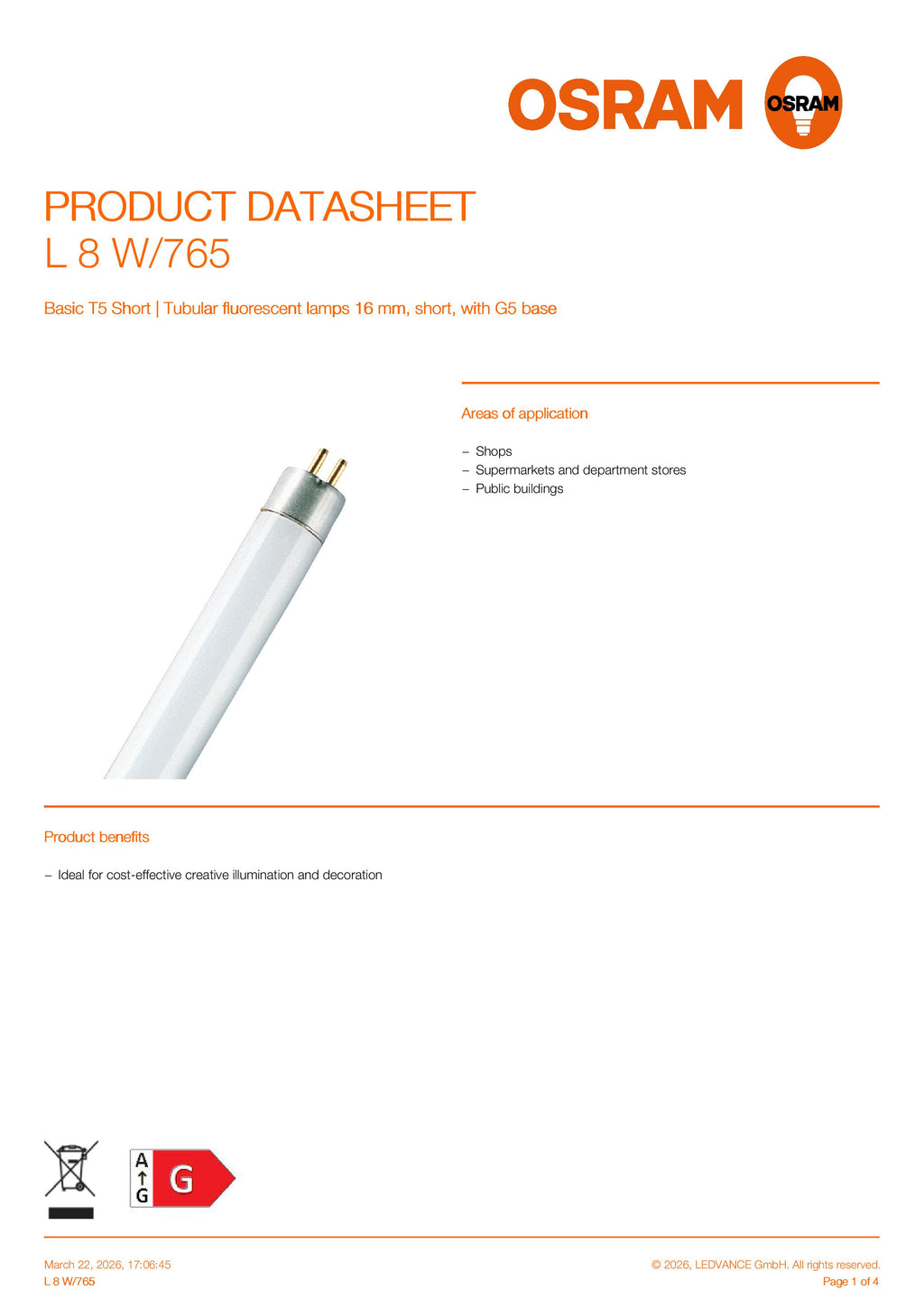 Osram 8 Watt Lumilux Basic T5 Short Fluorescent Tube Lamps 765