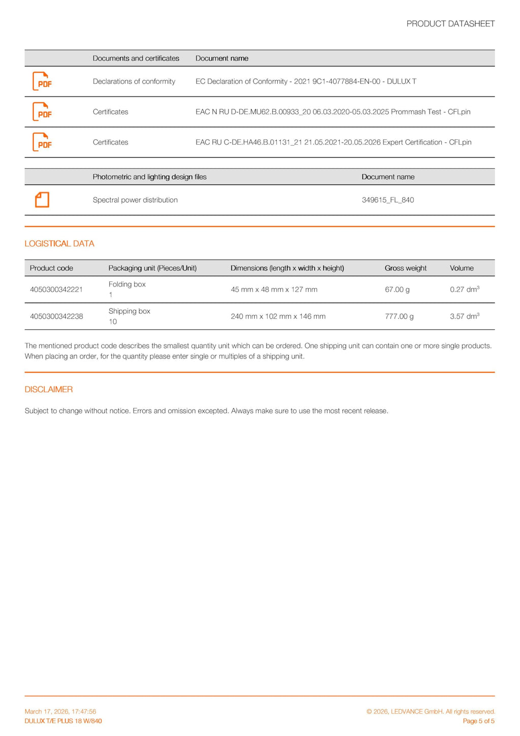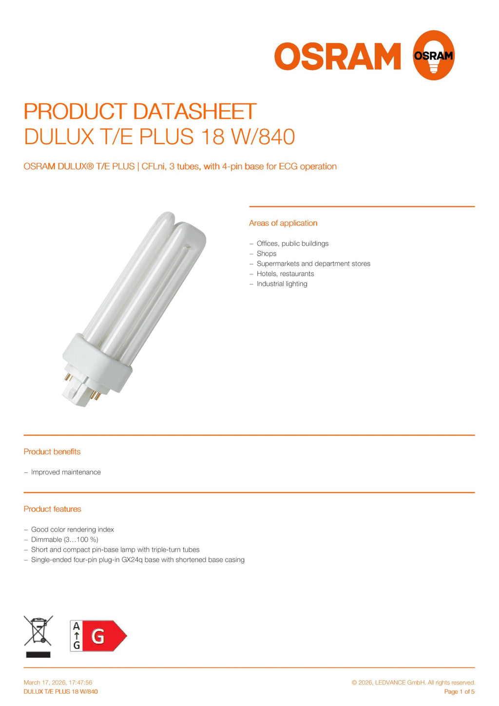 Osram 18W 4P DULUX T/E PLUS 840 Cool White