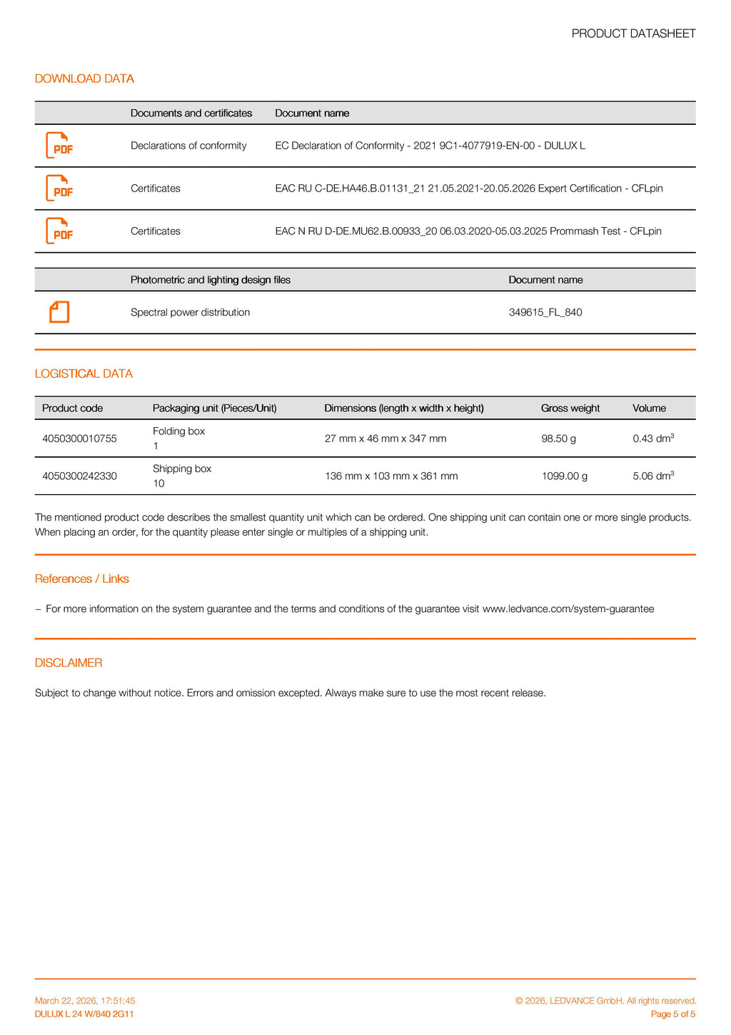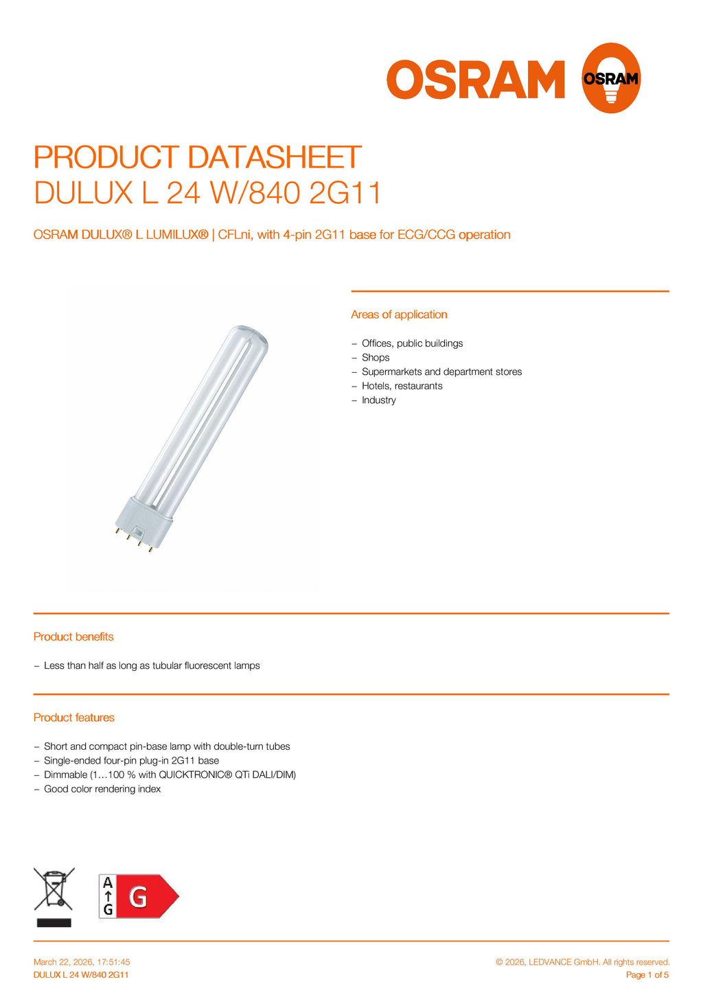 Osram Dulux L24W Compact Florescent Bulb 840 Cool White